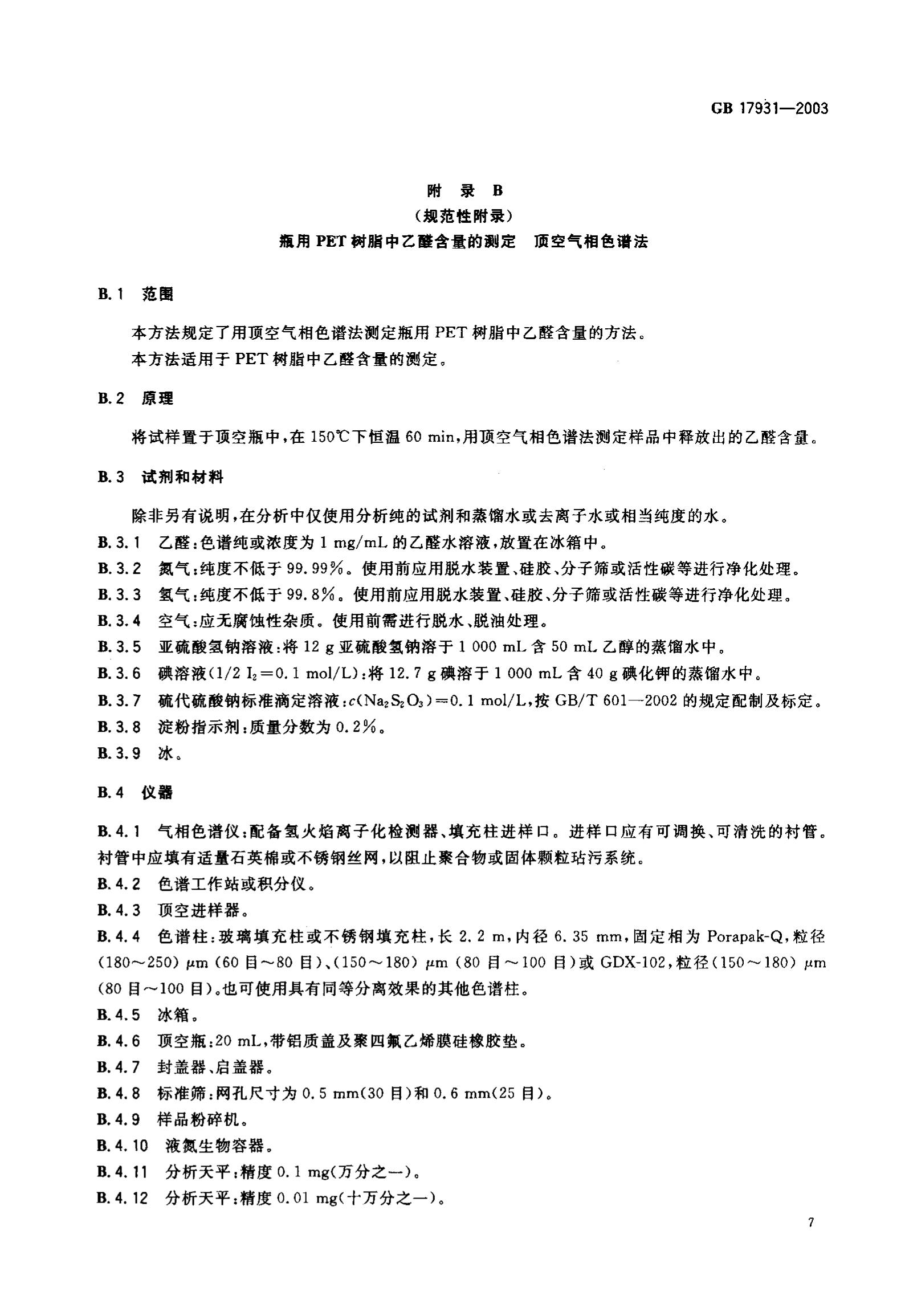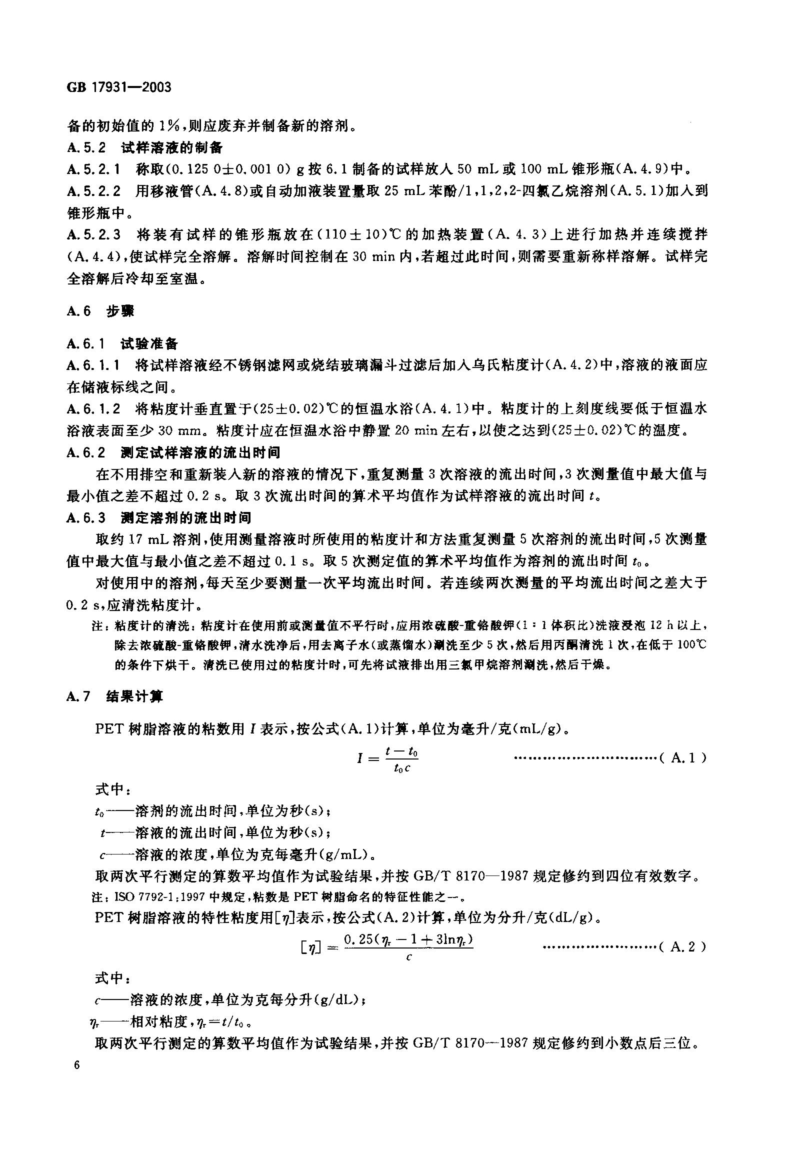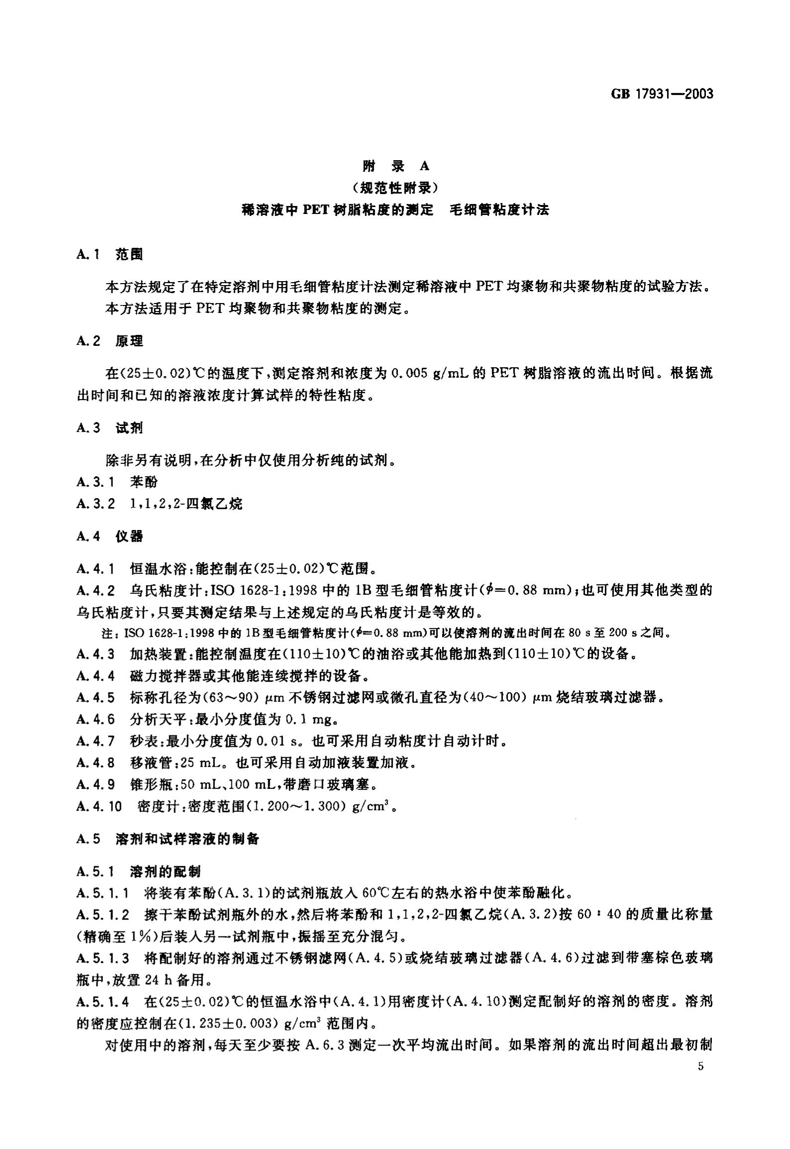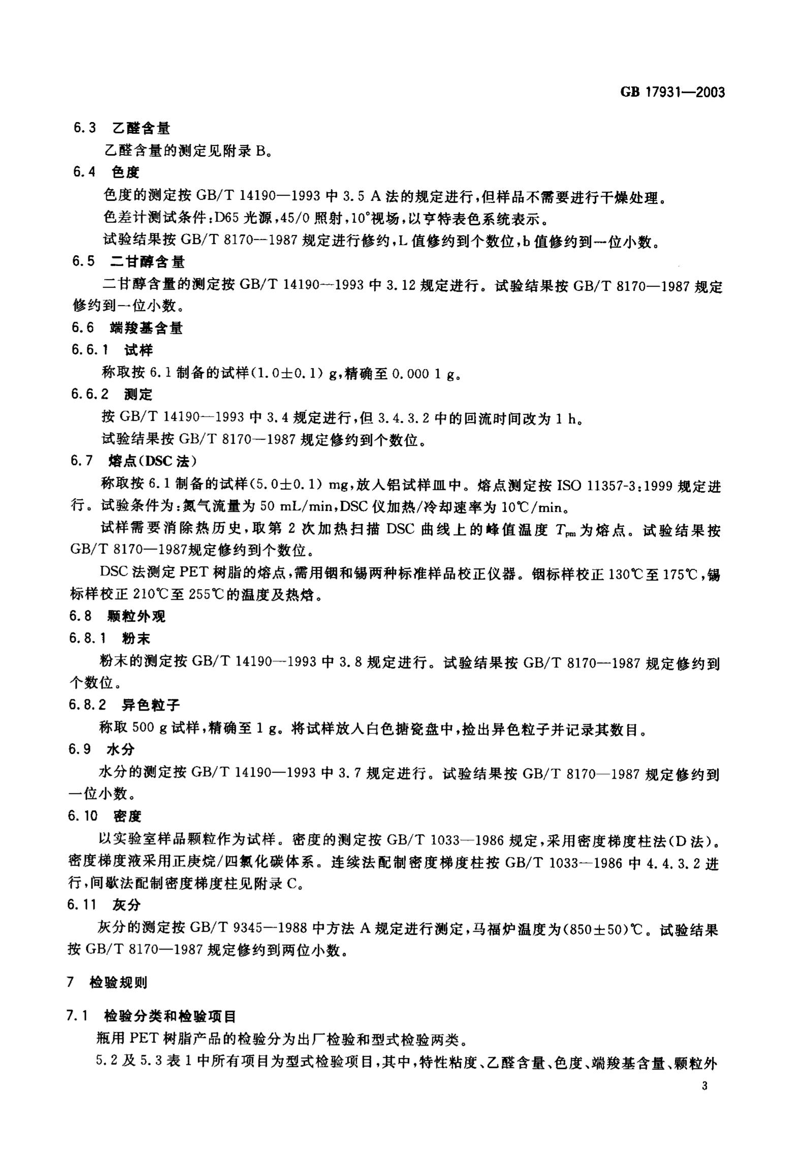GB17931-2003瓶用聚对苯二甲酸乙二醇酯(PET)树脂